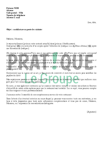 Lettre De Motivation Pour Un Emploi De Cuisinier Pratique.fr via www.pratique.fr